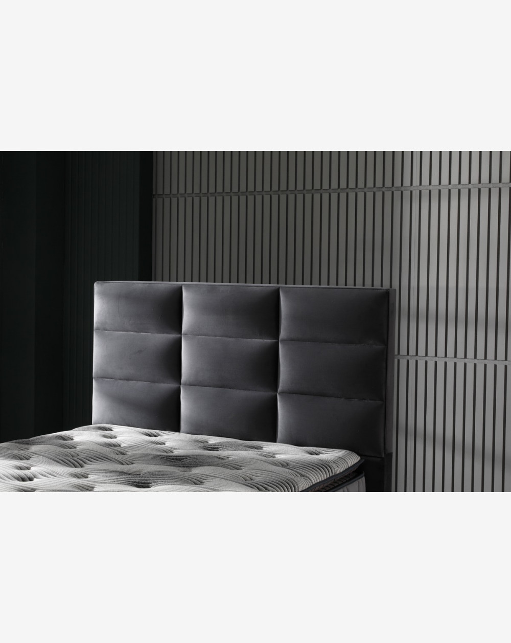 Επενδυμένο κρεβάτι Anastasia υψηλής αισθητικής με διακριτικό λιτό σχέδιο στο κεφαλάρι.
