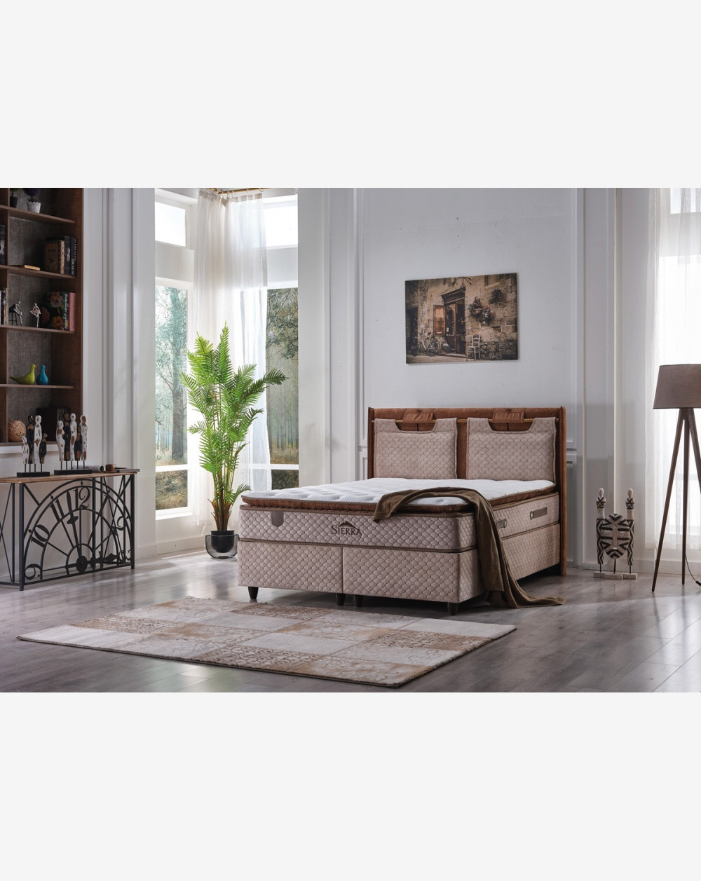 Επενδυμένο κρεβάτι Sierra υψηλής αισθητικής με διακριτικό λιτό σχέδιο στο κεφαλάρι.