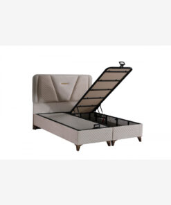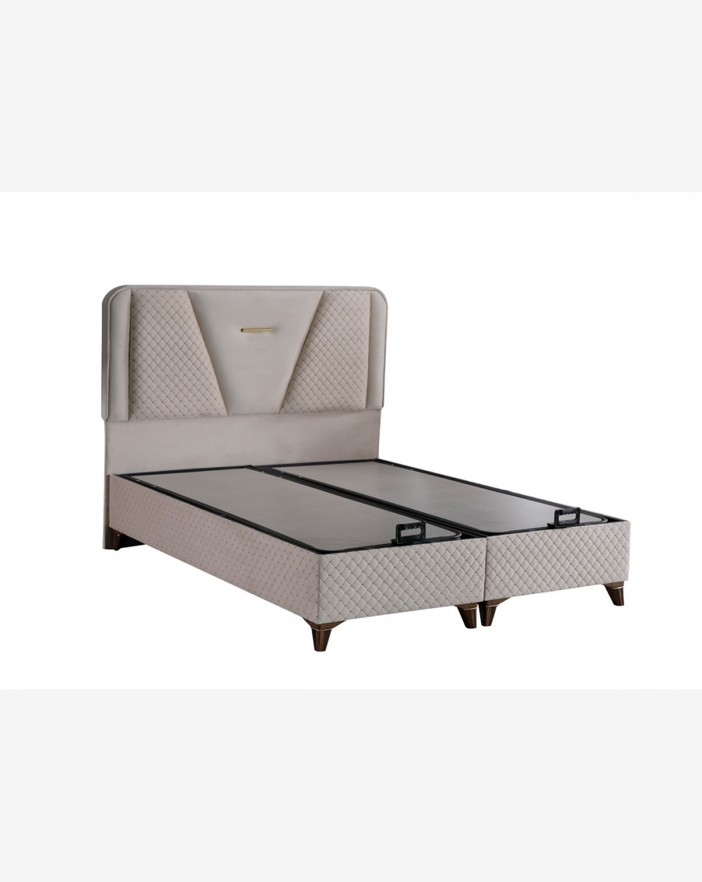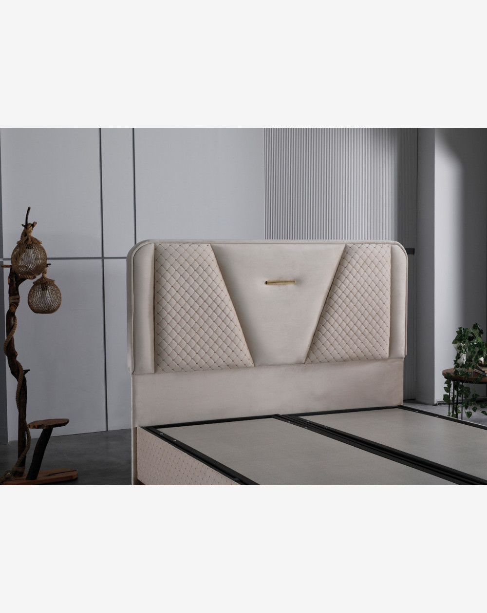 Επενδυμένο κρεβάτι Violet υψηλής αισθητικής με διακριτικό λιτό σχέδιο στο κεφαλάρι.