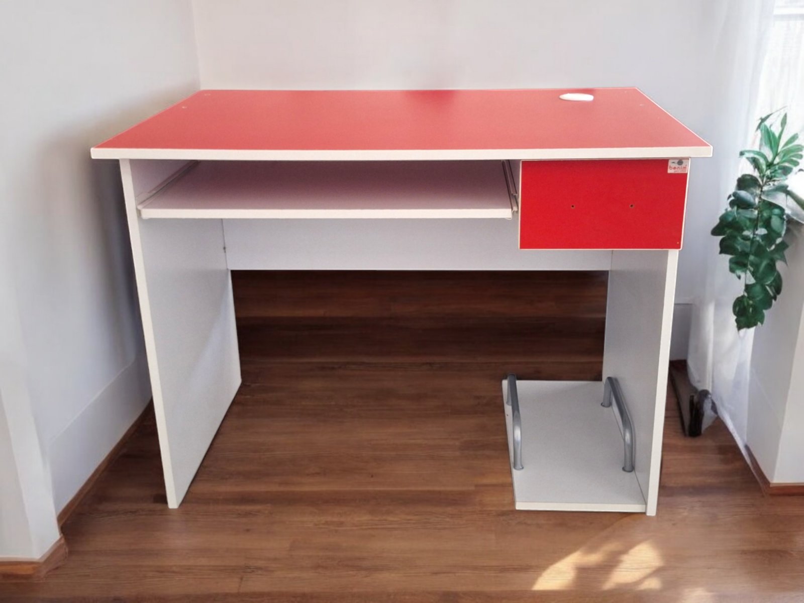 Στο επάνω μέρος του γραφείου διαθέτει ειδικό άνοιγμα για το πέρασμα των καλωδίων και συρόμενη βάση για την τοποθέτηση του πληκτρολογίου.