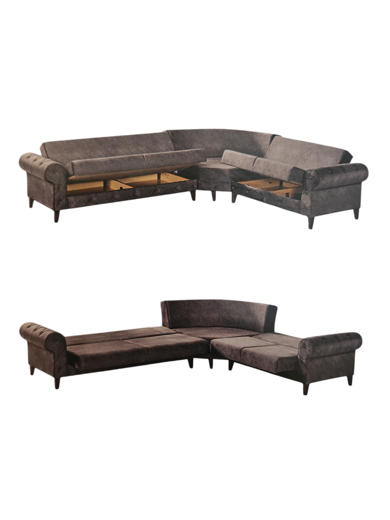 Σαλόνι γωνία που γίνεται κρεβάτι. Διαθέτει απόθηκευτικό χώρο. Ένα νεοκλασικό σχέδιο που ταιριάζει απόλυτα σε όλους τους χώρους.
