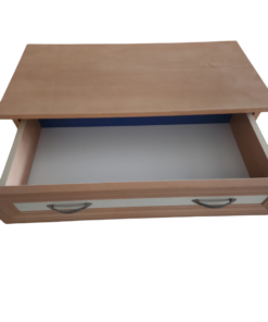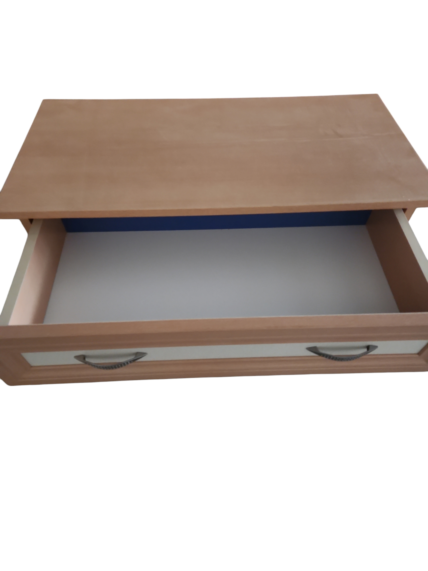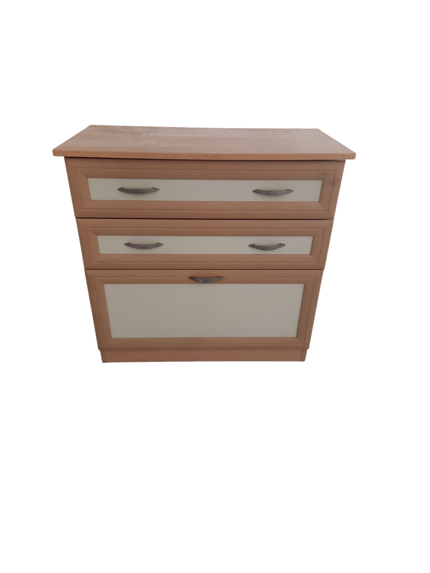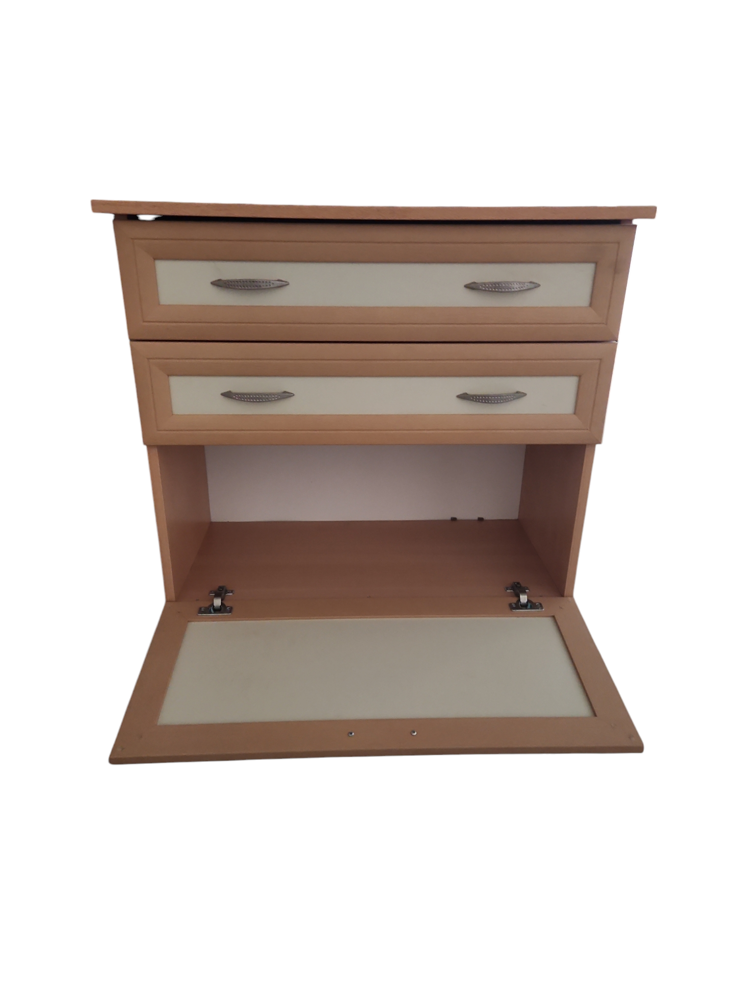 Συρταριέρα με δύο συρτάρια και ντουλάπι στο κάτω μέρος της, σε φυσικό και μπεζ απόχρωση